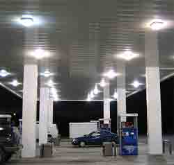 Canopy Lighting Applications Include Gas Stations, Warehouses, Factories, Grocery Stores & Retail Store Front Walkways.